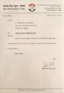 ਉਨ੍ਹਾਂ ਪੰਜਾਬ ਕਾਂਗਰਸ ਪ੍ਰਧਾਨ ਅਮਰਿੰਦਰ ਸਿੰਘ ਰਾਜਾ ਵੜਿੰਗ ਨੂੰ ਤਿੰਨ ਲਾਈਨਾਂ ਵਾਲਾ ਅਸਤੀਫਾ ਪੱਤਰ ਭੇਜ ਕੇ ਲਿਖਿਆ ਕਿ ਪੰਜਾਬ ਦੀ ਕਾਂਗਰਸ ਲੀਡਰਸ਼ਿਪ ਤੋਂ ਨਾਰਾਜ਼ ਹੋ ਕੇ ਮੈਂ ਜ਼ਿਲ੍ਹਾ ਸੰਗਰੂਰ ਦੇ ਪ੍ਰਧਾਨ ਅਤੇ ਮੁੱਢਲੀ ਮੈਂਬਰਸ਼ਿਪ ਤੋਂ ਅਸਤੀਫਾ ਦੇ ਰਿਹਾ ਹਾਂ। ਗੋਲਡੀ ਨੇ ਸੋਸ਼ਲ ਮੀਡੀਆ ‘ਤੇ ਲਿਖਿਆ- ਮੈਂ ਇਹ ਫੈਸਲਾ ਪੂਰੇ ਦਿਲ ਨਾਲ ਲੈ ਰਿਹਾ ਹਾਂ। ਮੇਰਾ ਪਰਿਵਾਰ, ਰਿਸ਼ਤੇਦਾਰ ਅਤੇ ਜੋ ਮੈਨੂੰ ਨਿੱਜੀ ਤੌਰ ‘ਤੇ ਜਾਣਦੇ ਹਨ, ਉਹ ਚੰਗੀ ਤਰ੍ਹਾਂ ਜਾਣਦੇ ਹਨ ਕਿ ਇਹ ਫੈਸਲਾ ਮੇਰੇ ਲਈ ਕਿੰਨਾ ਔਖਾ ਹੈ।