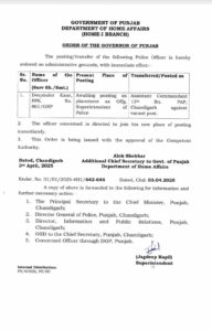 ਦਾ ਐਡੀਟਰ ਨਿਊਜ਼, ਚੰਡੀਗੜ੍ਹ —— ਪੰਜਾਬ ਸਰਕਾਰ ਨੇ PPS ਅਫ਼ਸਰ ਦੀਪਇੰਦਰ ਕੌਰ ਦੇ ਤਬਾਦਲੇ ਦੇ ਹੁਕਮ ਜਾਰੀ ਕੀਤੇ ਹਨ। ਹੁਕਮਾਂ ਦੀ ਕਾਪੀ ਹੇਠਾਂ ਦੇਖੋ….
