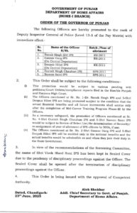 ਦਾ ਐਡੀਟਰ ਨਿਊਜ਼, ਚੰਡੀਗੜ੍ਹ —— ਪੰਜਾਬ ਸਰਕਾਰ ਨੇ ਅੱਜ ਵੱਡਾ ਫ਼ੈਸਲਾ ਲੈਂਦਿਆਂ IPS ਅਧਿਕਾਰੀਆਂ ਨੂੰ ਤਰੱਕੀਆਂ ਦਿੱਤੀਆਂ ਹਨ। ਪੰਜਾਬ ਸਰਕਾਰ ਵੱਲੋਂ ਜਾਰੀ ਨੋਟੀਫਿਕੇਸ਼ਨ ਵਿਚ ਪੰਜ ਆਈ. ਪੀ. ਐੱਸ. ਅਫਸਰਾਂ ਨੂੰ ਤਰੱਕੀਆਂ ਦਿੱਤੀਆਂ ਗਈਆਂ ਹਨ। ਜਿਨ੍ਹਾਂ ਅਫਸਰਾਂ ਨੂੰ ਤਰੱਕੀਆਂ ਦਿੱਤੀਆਂ ਗਈਆਂ ਹਨ, ਉਨ੍ਹਾਂ ਵਿਚ ਨਾਨਕ ਸਿੰਘ, ਗੌਰਵ ਗਰਗ, ਦੀਪਕ ਹਿਲੋਰੀ, ਗੁਰਮੀਤ ਸਿੰਘ ਚੌਹਾਨ ਅਤੇ ਨਵੀਨ ਸੈਣੀ ਸ਼ਾਮਲ ਹਨ। ਤਰੱਕੀਆਂ ਦੀ ਪੂਰੀ ਸੂਚੀ ਹੇਠਾਂ ਦਿੱਤੀ ਗਈ ਹੈ।