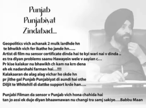 ਬੱਬੂ ਮਾਨ ਨੇ ਆਪਣੀ ਪੋਸਟ ਵਿੱਚ ਲਿਖਿਆ- ਪੰਜਾਬ, ਪੰਜਾਬੀਅਤ ਜ਼ਿੰਦਾਬਾਦ… ਭੂ-ਰਾਜਨੀਤੀ ਵਿੱਚ, ਦੋ ਦੇਸ਼ ਅਚਾਨਕ ਲੜਦੇ ਹਨ ਅਤੇ ਭਵਿੱਖ ਵਿੱਚ ਦੁਬਾਰਾ ਇੱਕ ਹੋ ਜਾਂਦੇ ਹਨ। ਅਦਾਕਾਰ ਦੀ ਫਿਲਮ ਨੂੰ ਸੈਂਸਰ ਸਰਟੀਫਿਕੇਟ ਮਿਲਦਾ ਹੈ, ਕਈ ਵਾਰ ਉਸਨੂੰ ਉਹ ਵੀ ਨਹੀਂ ਮਿਲਦਾ। ਸਾਨੂੰ ‘ਹਵਾਏਂ’ (ਪੰਜਾਬੀ ਫ਼ਿਲਮ) ਦੌਰਾਨ ਵੀ ਇਸ ਤਰ੍ਹਾਂ ਦੀ ਸਮੱਸਿਆ ਦਾ ਸਾਹਮਣਾ ਕਰਨਾ ਪਿਆ ਸੀ।