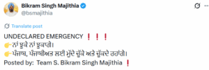ਇਸ ਤੋਂ ਬਿਨਾਂ ਅਕਾਲੀ ਆਗੂ ਬਿਕਰਮ ਸਿੰਘ ਮਜੀਠੀਆ ਦੀ ਟੀਮ ਵਲੋਂ ਮਜੀਠੀਆ ਦੀ ਪੇਸ਼ੀ ਤੋਂ ਪਹਿਲਾਂ ਸੋਸ਼ਲ ਮੀਡੀਆ ’ਤੇ ਇਕ ਪੋਸਟ ਸਾਂਝੀ ਕੀਤੀ ਗਈ ਹੈ। ਪੋਸਟ ਵਿਚ ਉਨ੍ਹਾਂ ਕਿਹਾ ਕਿ, “ਅਣ-ਐਲਾਨੀ ਐਮਰਜੈਂਸੀ। ਨਾ ਝੁਕੇ ਨਾਂ ਝੁਕਾਂਗੇ ਅਤੇ ਪੰਜਾਬ, ਪੰਜਾਬੀਅਤ ਲਈ ਮੁੱਦੇ ਚੁੱਕੇ ਅਤੇ ਅੱਗੇ ਵੀ ਚੁੱਕਦੇ ਰਹਾਂਗੇ।”