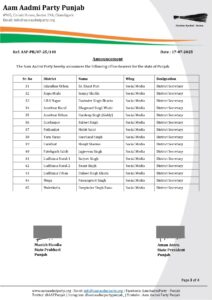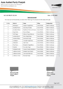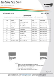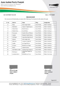 ਆਪ ਪੰਜਾਬ ਨੇ 56 ਅਹੁਦੇਦਾਰ ਐਲਾਨੇ, ਪੜ੍ਹੋ ਲਿਸਟ