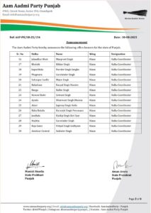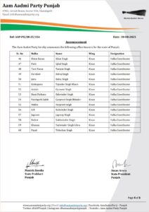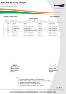 ਆਪ ਨੇ ਆਪਣੇ ਕਿਸਾਨ ਵਿੰਗ ਦਾ ਕੀਤਾ ਵਿਸਥਾਰ: 110 ਕਿਸਾਨ ਕੋਆਰਡੀਨੇਟਰ ਕੀਤੇ ਨਿਯੁਕਤ