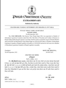ਨੋਟੀਫਿਕੇਸ਼ਨ ਵਿੱਚ ਕਿਹਾ ਗਿਆ ਹੈ ਕਿ ਵਿਧਾਇਕ ਕੁੰਵਰ ਵਿਜੈ ਪ੍ਰਤਾਪ ਸਿੰਘ ਨੂੰ ਸਬ-ਆਰਡੀਨੇਟ ਲੈਜਿਸਲੇਸ਼ਨ ਕਮੇਟੀ ਦਾ ਮੈਂਬਰ ਨਿਯੁਕਤ ਕੀਤਾ ਗਿਆ ਸੀ ਪਰ ਉਨ੍ਹਾਂ ਨੇ 19 ਅਗਸਤ, 2025 ਨੂੰ ਇਸ ਤੋਂ ਅਸਤੀਫਾ ਦੇਣ ਦੀ ਬੇਨਤੀ ਕੀਤੀ ਸੀ। ਸਪੀਕਰ ਵੱਲੋਂ ਉਨ੍ਹਾਂ ਦੀ ਬੇਨਤੀ ਮਨਜ਼ੂਰ ਕਰਦਿਆਂ 5 ਸਤੰਬਰ, 2025 ਤੋਂ ਅਸਤੀਫਾ ਪ੍ਰਭਾਵਸ਼ਾਲੀ ਮੰਨਿਆ ਗਿਆ ਹੈ। ਉਨ੍ਹਾਂ ਵੱਲੋਂ ਮਿਤੀ 19.08.2025 ਨੂੰ ਕੀਤੀ ਗਈ ਬੇਨਤੀ ਪ੍ਰਵਾਨ ਕਰਦੇ ਹੋਏ ਸਪੀਕਰ, ਪੰਜਾਬ ਵਿਧਾਨ ਸਭਾ ਵਲੋਂ ਮਿਤੀ 05.09.2025 ਤੋਂ ਕੁੰਵਰ ਵਿਜੈ ਪ੍ਰਤਾਪ ਸਿੰਘ, ਮਾਨਯੋਗ ਮੈਂਬਰ, ਪੰਜਾਬ ਵਿਧਾਨ ਸਭਾ ਨੂੰ ਅਧੀਨ ਵਿਧਾਨ ਕਮੇਟੀ ਦੇ ਮੈਂਬਰ ਦੀਆਂ ਜਿੰਮੇਵਾਰੀਆਂ ਤੋਂ ਮੁਕਤ ਕਰ ਦਿੱਤਾ ਗਿਆ ਅਤੇ ਹੁਣ ਉਹ ਪੰਜਾਬ ਵਿਧਾਨ ਸਭਾ ਦੀ ਅਧੀਨ ਵਿਧਾਨ ਕਮੇਟੀ ਦੇ ਮੈਂਬਰ ਨਹੀਂ ਹੋਣਗੇ।