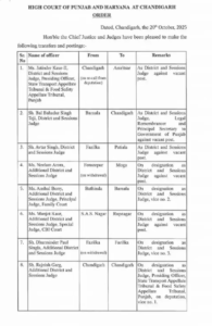 ਦੀਵਾਲੀ ਮੌਕੇ ਪੰਜਾਬ ਦੇ 13 ਜੱਜਾਂ ਦਾ ਤਬਾਦਲਾ: ਹਾਈ-ਕੋਰਟ ਨੇ ਹੁਕਮ ਕੀਤੇ ਜਾਰੀ