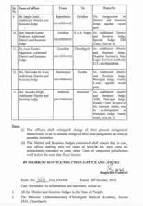 ਸਾਰੇ ਜੱਜ ਜਲਦੀ ਹੀ ਆਪਣੀਆਂ ਡਿਊਟੀਆਂ ਸੰਭਾਲਣਗੇ। ਜਤਿੰਦਰ ਕੌਰ ਨੂੰ ਅੰਮ੍ਰਿਤਸਰ ਦਾ ਜ਼ਿਲ੍ਹਾ ਅਤੇ ਸੈਸ਼ਨ ਜੱਜ ਨਿਯੁਕਤ ਕੀਤਾ ਗਿਆ ਹੈ। ਅਵਤਾਰ ਸਿੰਘ ਦਾ ਫਾਜ਼ਿਲਕਾ ਤੋਂ ਪਟਿਆਲਾ ਤਬਾਦਲਾ ਕੀਤਾ ਗਿਆ ਹੈ। ਇਹ ਹਰਿਆਣਾ ਵਿੱਚ 29 ਜੱਜਾਂ ਦਾ ਤਬਾਦਲਾ ਹੈ। ਇਸ ਤੋਂ ਪਹਿਲਾਂ, ਪੰਜਾਬ ਵਿੱਚ 52 ਜ਼ਿਲ੍ਹਾ ਅਤੇ ਸੈਸ਼ਨ ਜੱਜਾਂ ਦਾ 15 ਅਪ੍ਰੈਲ, 2025 ਨੂੰ ਤਬਾਦਲਾ ਕੀਤਾ ਗਿਆ ਸੀ।