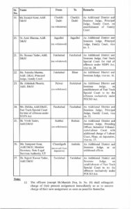 ਦਾ ਐਡੀਟਰ ਨਿਊਜ਼, ਚੰਡੀਗੜ੍ਹ —— ਪੰਜਾਬ ਅਤੇ ਹਰਿਆਣਾ ਹਾਈ ਕੋਰਟ ਨੇ ਹਰਿਆਣਾ ਵਿੱਚ 27 ਐਡੀਸ਼ਨਲ ਜ਼ਿਲ੍ਹਾ ਅਤੇ ਸੈਸ਼ਨ ਜੱਜਾਂ ਦੇ ਤਬਾਦਲੇ ਕੀਤੇ ਹਨ। ਇਹ ਹੁਕਮ ਸੋਮਵਾਰ ਨੂੰ ਦੀਵਾਲੀ ਦੇ ਮੌਕੇ ਜਾਰੀ ਕੀਤੇ ਗਏ ਸਨ ਅਤੇ ਤੁਰੰਤ ਲਾਗੂ ਹੋ ਗਏ ਹਨ। ਹਾਈ ਕੋਰਟ ਦੇ ਹੁਕਮਾਂ ਵਿੱਚ ਕਿਹਾ ਗਿਆ ਹੈ ਕਿ ਮਨੀਸ਼ ਦੁਆ ਨੂੰ ਛੱਡ ਕੇ ਸਾਰੇ ਅਧਿਕਾਰੀ ਤੁਰੰਤ ਆਪਣੇ ਮੌਜੂਦਾ ਕਾਰਜਭਾਰ ਛੱਡ ਕੇ ਆਪਣੀਆਂ ਨਵੀਆਂ ਡਿਊਟੀਆਂ ਸੰਭਾਲ ਲੈਣ। ਮਨੀਸ਼ ਦੁਆ ਦਾ ਤਬਾਦਲਾ ਅਤੇ ਨਿਯੁਕਤੀ 3 ਨਵੰਬਰ, 2025 ਤੋਂ ਲਾਗੂ ਹੋਵੇਗੀ।