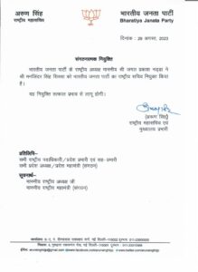 ਨਵੀਂ ਦਿੱਲੀ, 29 ਅਗਸਤ 2023 – ਭਾਜਪਾ ਨੇ ਮਨਜਿੰਦਰ ਸਿੰਘ ਸਿਰਸਾ ਨੂੰ ਕੌਮੀ ਸਕੱਤਰ ਨਿਯੁਕਤ ਕੀਤਾ ਹੈ। ਭਾਰਤੀ ਜਨਤਾ ਪਾਰਟੀ ਦੇ ਰਾਸ਼ਟਰੀ ਪ੍ਰਧਾਨ ਜੇ.ਪੀ.ਨੱਡਾ ਵੱਲੋਂ ਮਨਜਿੰਦਰ ਸਿੰਘ ਸਿਰਸਾ ਦੀ ਕੌਮੀ ਸਕੱਤਰ ਵਜੋਂ ਨਿਯੁਕਤੀ ਕੀਤੀ ਗਈ ਹੈ।