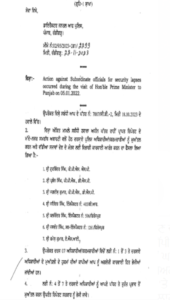 ਇਸ ਸਬੰਧੀ ਇੱਕ ਰਿਪੋਰਟ ਪੰਜਾਬ ਦੇ ਡੀਜੀਪੀ ਵੱਲੋਂ 18 ਅਕਤੂਬਰ 2023 ਨੂੰ ਦਿੱਤੀ ਗਈ ਸੀ, ਜਿਸ ਵਿੱਚ ਕਿਹਾ ਗਿਆ ਸੀ ਕਿ ਪ੍ਰਧਾਨ ਮੰਤਰੀ ਦੇ ਦੌਰੇ ਦੌਰਾਨ ਇਨ੍ਹਾਂ ਪੁਲਿਸ ਮੁਲਾਜ਼ਮਾਂ ਨੇ ਆਪਣੀ ਡਿਊਟੀ ਸਹੀ ਢੰਗ ਨਾਲ ਨਹੀਂ ਨਿਭਾਈ।